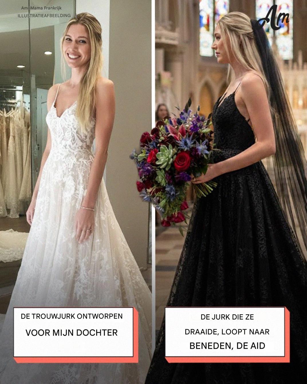 Ik dacht dat ik elk detail van de droombruiloft van mijn dochter kende, totdat ze in een zwarte jurk naar het altaar liep. Wat er daarna gebeurde, veranderde een perfecte dag in iets wat niemand had gepland.