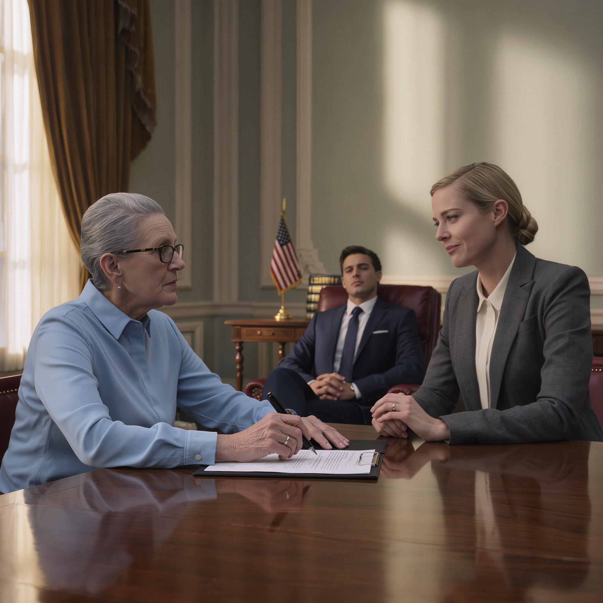 De kamer was elegant en sfeerloos, een kantoor ontworpen om mensen zonder vragen hun naam te laten noteren. Zware gordijnen, gedempt licht – geen plek voor discussies, en dat was precies de reden waarom ze hem had uitgekozen.