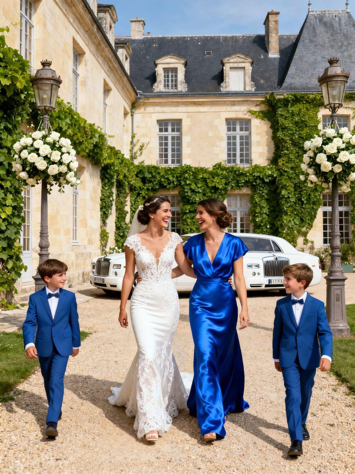 De tuin was prachtig versierd met witte bloemen, kristallen lampen en lange tafels met gouden servies. Een strijkkwartet speelde zachte muziek terwijl de gasten champagne dronken.