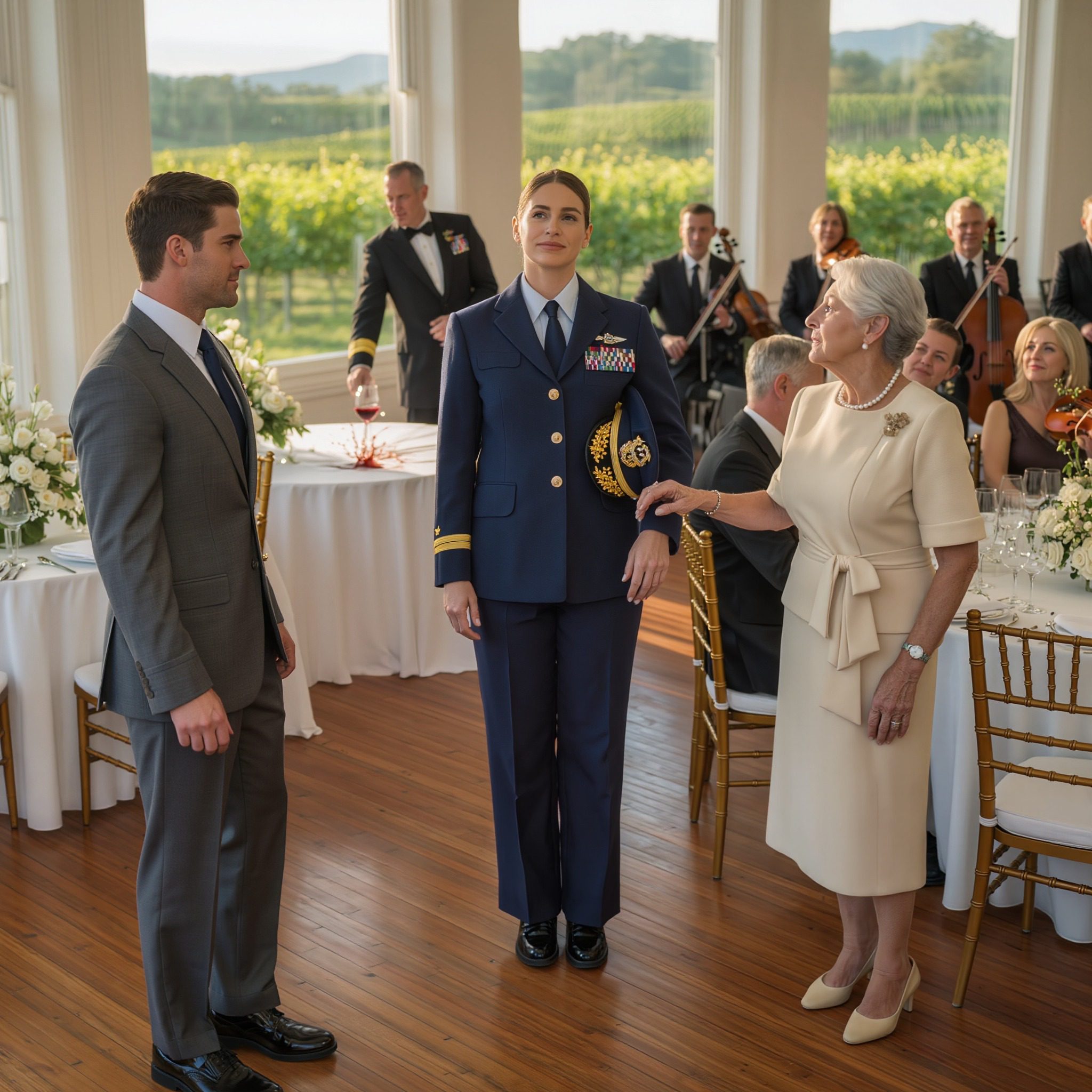 Mijn familie had me gezegd dat ik mijn marine-uniform niet moest dragen naar de bruiloft van mijn broer, omdat, zoals mijn moeder het met een voorzichtige stem zei: « soldaten zijn gênant. » Maar zodra ik die wijngaardzaal binnenliep met twee sterren op mijn schouders en mijn pet in mijn hand, werd het muisstil. Twintig mariniers stonden tegelijk op en alles wat mijn familie dacht te weten over mij stortte in elkaar voor de ogen van de 120 gasten.