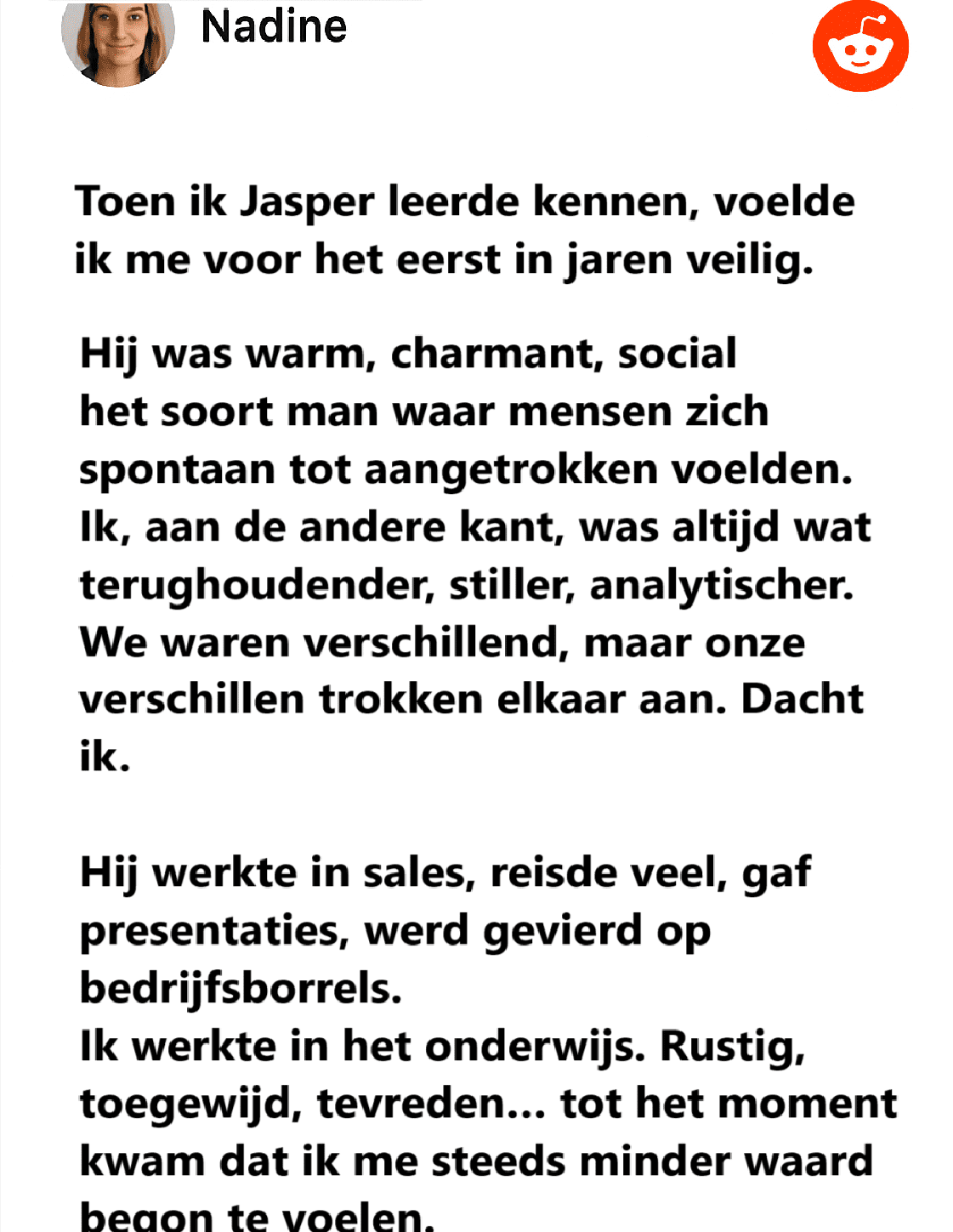 💔 Mijn man was alles wat ik niet was — succesvol, charismatisch en geliefd. En ik haatte mezelf omdat ik hem begon te benijden.