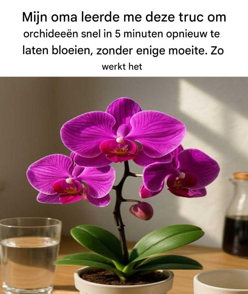 Gelukkig heeft mijn oma, een gepassioneerde tuinier met een voorliefde voor orchideeën, een simpele maar effectieve truc doorgegeven waarmee orchideeën snel en met minimale inspanning weer kunnen bloeien. Deze methode, die slechts vijf minuten duurt en vrijwel geen werk vereist, heeft mijn kijk op orchideeënverzorging compleet veranderd. In dit artikel deel ik haar geheim met je, samen met inzichten in waarom het werkt en hoe je het thuis kunt toepassen.