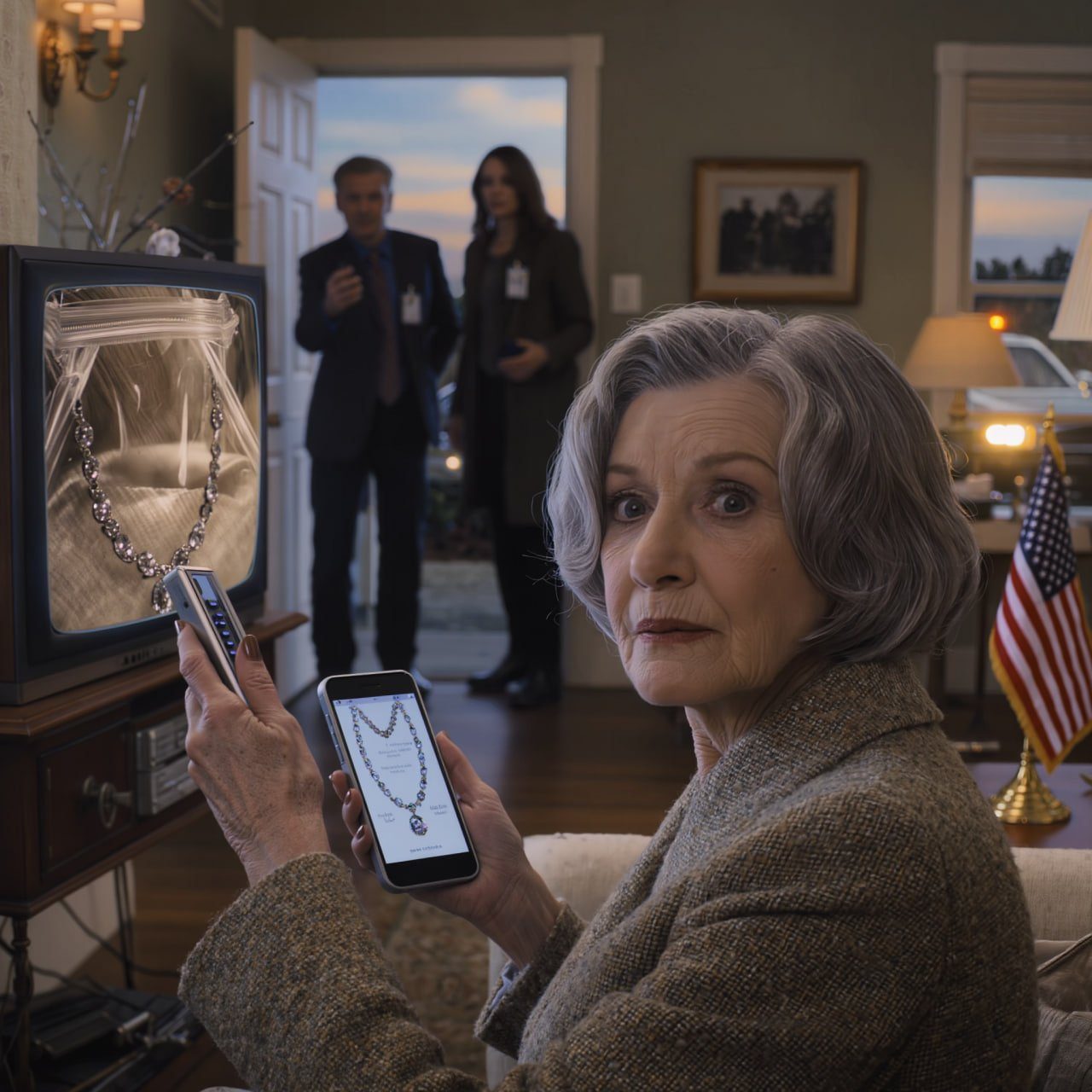 Mijn schoondochter leende mijn sieraden voor een feestje. Uren later zag ik mijn ketting op het nieuws, in een doorzichtige plastic zak. Mijn telefoon trilde met een sms’je van haar: ‘Geloof niet alles wat ze zeggen.’ Minuten later stonden er politieauto’s voor mijn huis… en het vreemdste was: ze vroegen niet naar haar. Ze vroegen naar mij.