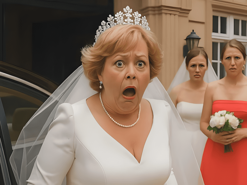 Ik stond verstijfd. Ze droeg een witte trouwjurk, een lange sluier en hield een boeket witte rozen in haar handen. Op dat moment voelde het alsof de grond onder mijn voeten verdween. Ze deed alsof ze ontzettend verrast was: