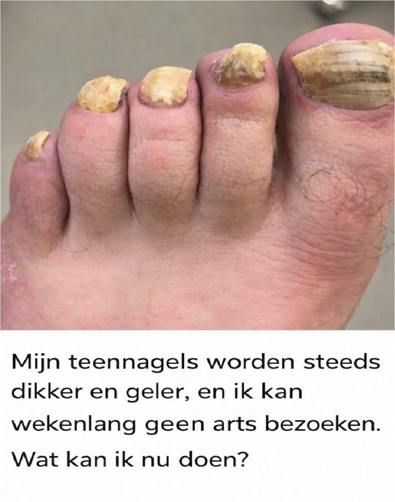 Mijn teennagels worden steeds dikker en geler, en ik kan pas over een paar weken naar de dokter. Wat kan ik nu doen?