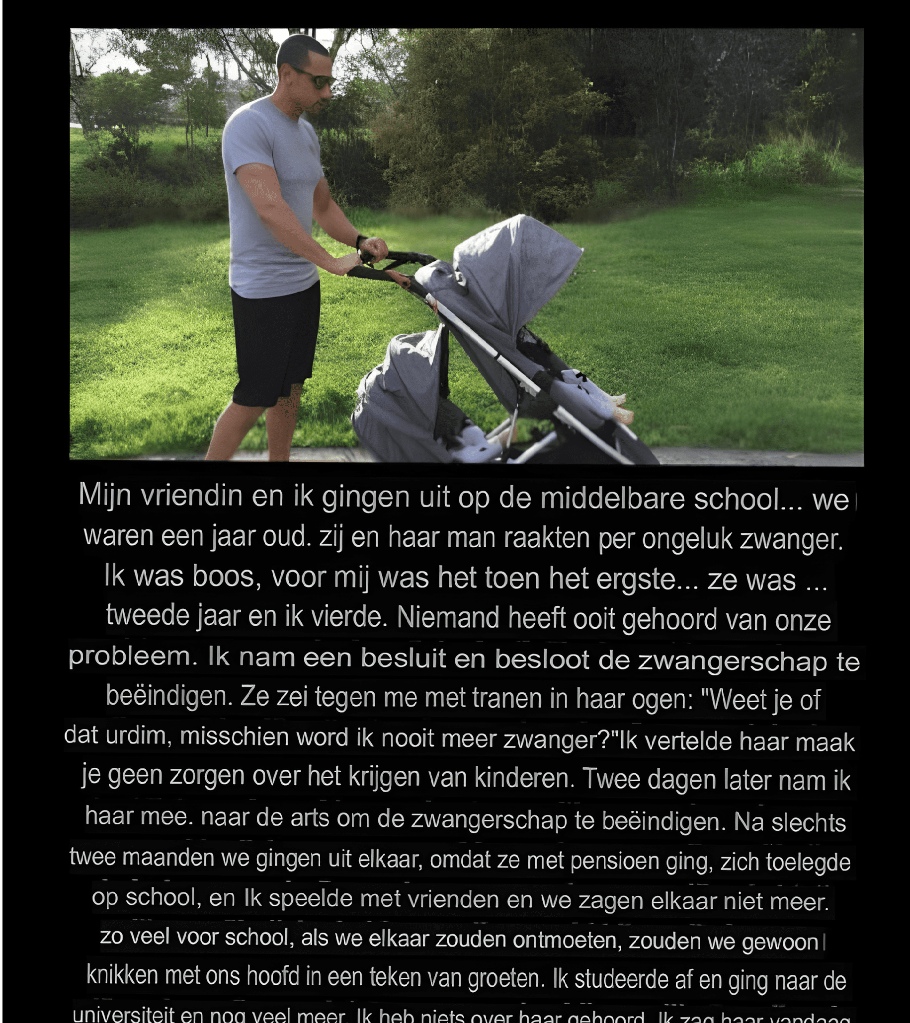 Vijf jaar later zie je haar weer. Jij met je vrouw, je kinderen — het leven heeft je gegeven wat je toen nog niet durfde te dromen. En zij? Zij draagt zichtbaar de littekens van een keuze die jullie samen maakten, maar die zij tot op de dag van vandaag meedraagt. Letterlijk.