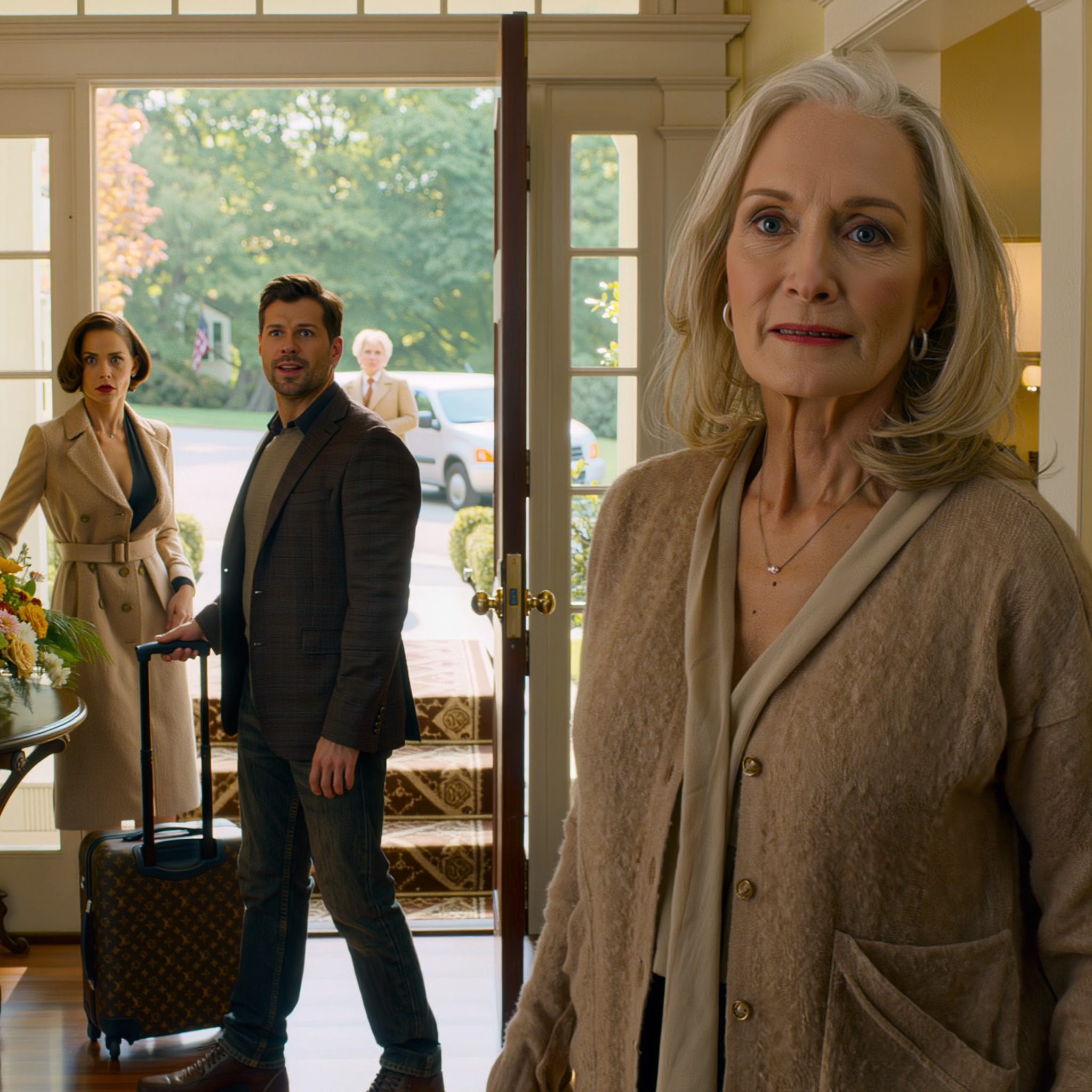 Mijn zoon verbrak dertien jaar lang elk contact met me, totdat hij erachter kwam dat ik miljonair was geworden. Hij stond met tassen en zijn vrouw voor mijn deur: ‘Als je zoon heb ik recht op een deel hiervan. We trekken bij je in – je hebt toch al die extra ruimte.’ Ik glimlachte… en deed wat ik al veel eerder had moeten doen.