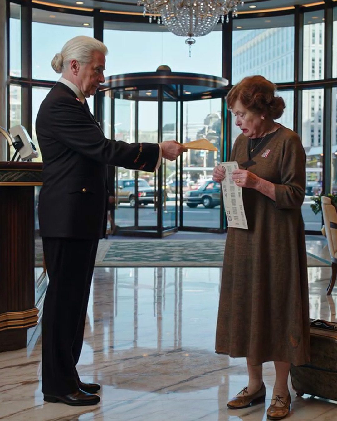 Mijn zoon en schoondochter noemt mij voor het eerst mee naar een vijf sterren. We merkten het hele weekend op, maar toen zei hij: « Bedankt voor het verblijf, mam, » en rende weg, waardoor ik zonder geld achterbleef om de rekening te betalen. Plotseling kwam de bejaarde receptioniste achter de balie vandaan en vroeg: « Bent u de dochter van meneer Harrison? Ik heb 33 jaar voor uw vader gewerkt. Voordat hij stierf, zei hij tegen me: ‘Geef deze envelop aan mijn dochter als u haar ziet.' » Toen ik de envelop opende, was ik verdwenenloos, want mijn zoon had dit allemaal van begin af aan gepland, en wat ik erin aantrof, mijn feitelijke leven voorgoed.