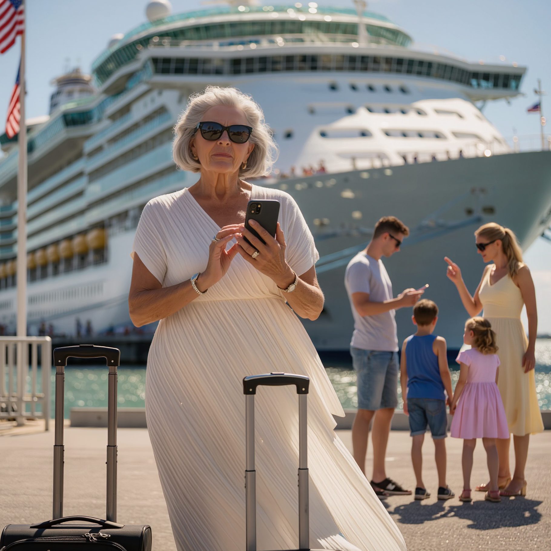Ik stond in de cruisehaven, mijn koffers stonden klaar, ik had zonnebrandcrème op en mijn zonnebril op, klaar om aan mijn droomvakantie met mijn zoon en zijn vrouw te beginnen – tenminste, dat dacht ik, totdat mijn telefoon trilde met een sms-bericht.