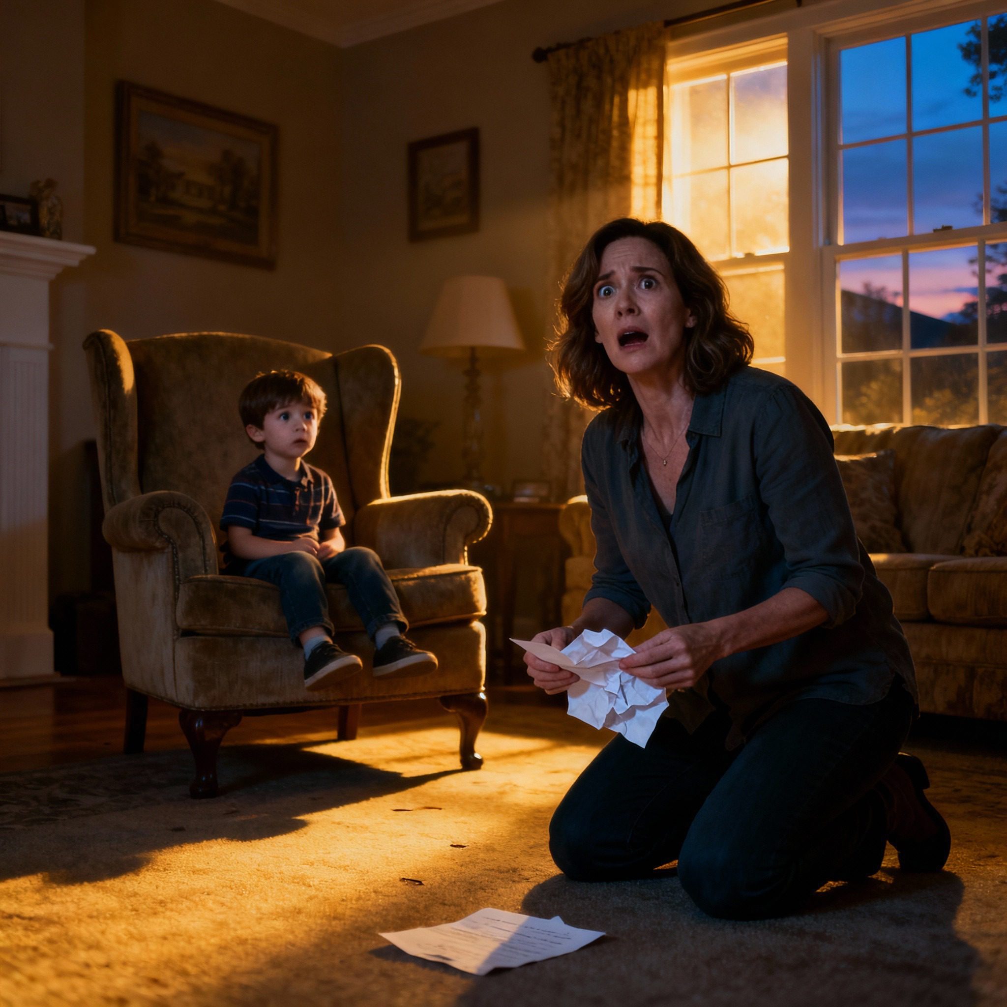 Toen zag ik hem. Kleine Kyle. Hij was pas vijf jaar oud, met grote, angstige ogen en een bos zandblond haar. Hij zat opgerold in de grote fauteuil bij het raam – die we opa’s stoel noemden. Hij klemde een sierkussen zo stevig tegen zijn borst dat zijn knokkels wit waren. Hij huilde niet. Hij keek me alleen maar aan, wachtend.