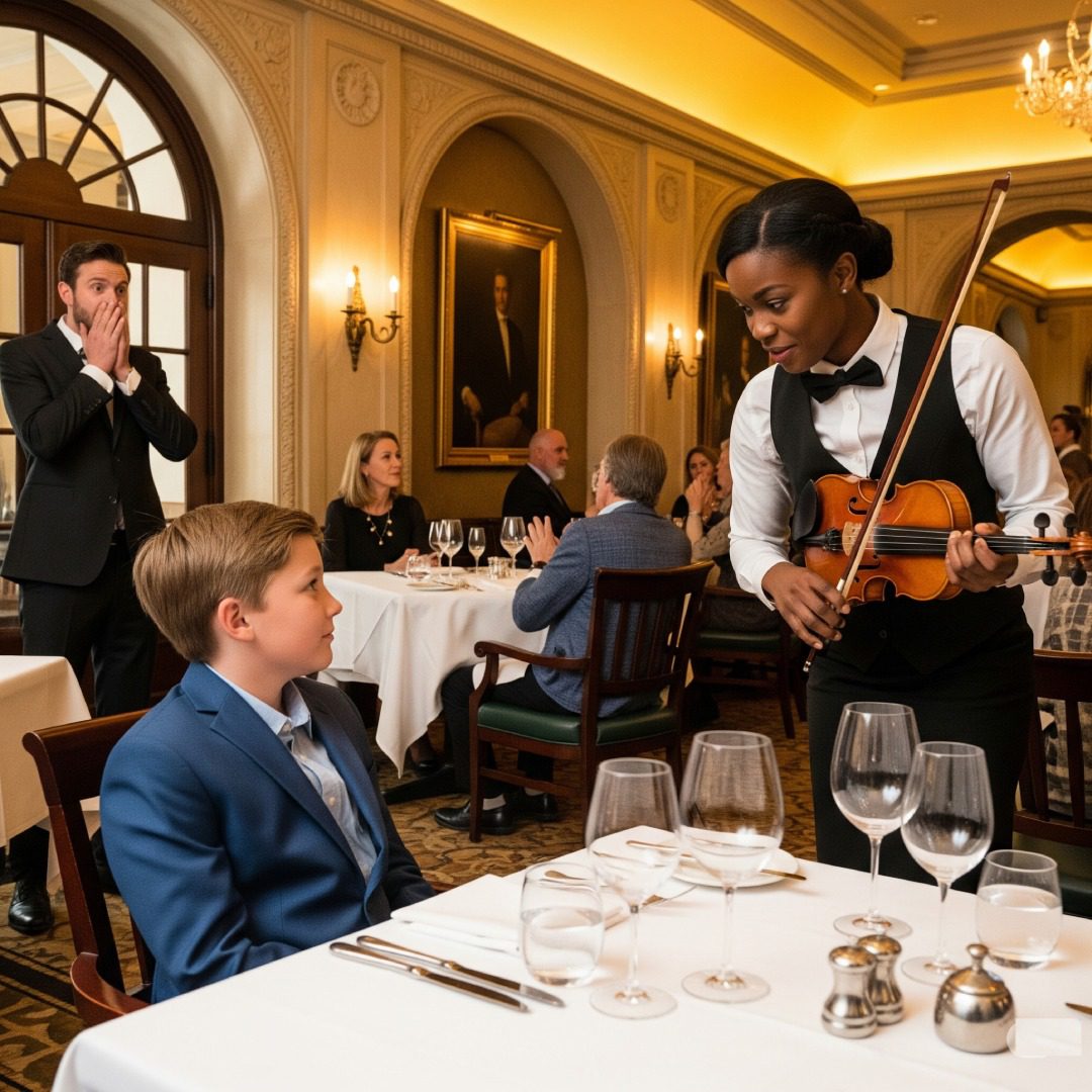 De Sterling Room was het meest exclusieve restaurant in de stad, een plek waar miljardairs deals sloten met kristallen glazen en stille strijkmuziek. Richard Hale, een machtige CEO, zat stijf aan zijn gereserveerde tafel. Tegenover hem zat zijn achtjarige zoon Oliver-stil, teruggetrokken, zijn blik gericht op het bestek.