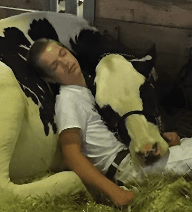 Vijftien-jaar-oude Mitchell Mijnwerker, namen onlangs deel aan de melkvee tonen aan de Iowa State Fair met zijn koe, Audri. Ondanks hun inzet en het harde werk, zij geplaatst vijfde van de zeven concurrenten. Beide waren uitgeput daarna. Wanneer Mitchell ‘ s vader de kamer binnenkwam, vond hij hen beide dommelen en vastgelegd op het moment met een foto. De foto, onderschrift “Onze zoon Mitchell en zijn vaars na gisteren, op de” snel viral ging, is het verzamelen van meer dan 15.000 likes de volgende dag.