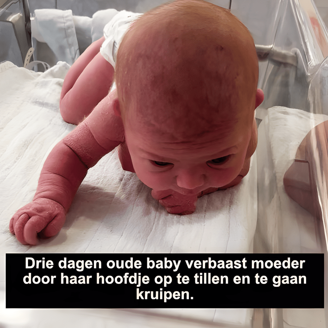 Nog in het ziekenhuis werd baby Nyilah vastgelegd op camera, terwijl ze haar eigen hoofd optilde en in haar bedje kroop.