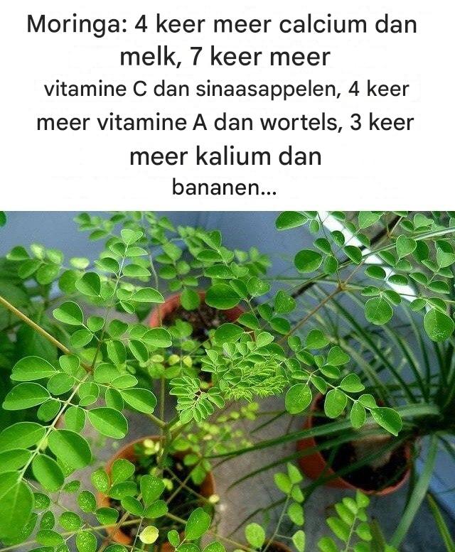Moringa: 4 keer meer calcium dan melk, 7 keer meer vitamine C dan sinaasappels, 4 keer meer vitamine A dan wortels, 3 keer meer kalium dan bananen…