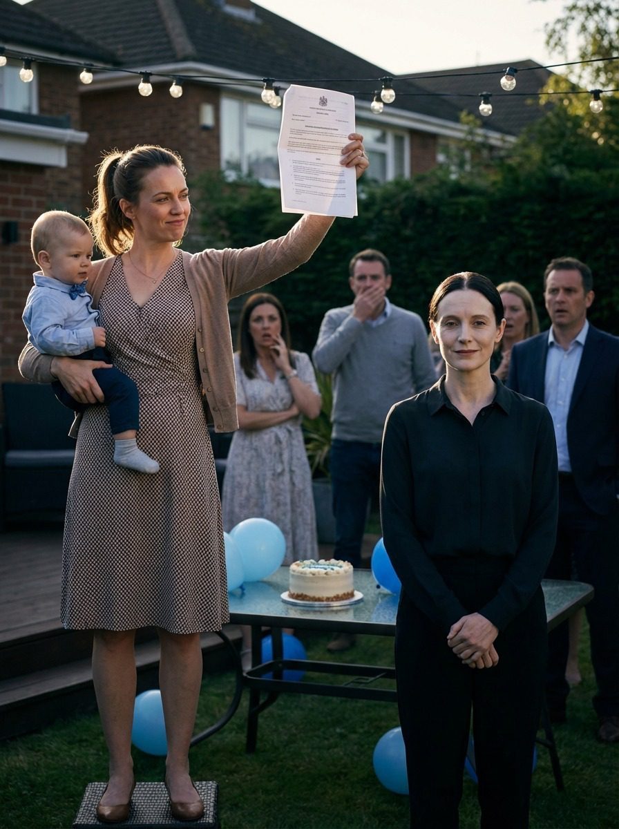 Na de begrafenis van mijn man ging ik naar het eerste verjaardagsfeestje van de zoon van mijn zus, en ze kondigde aan: « Mijn zoon is het kind van je man, dus… » « Erfenis, ik neem de helft van je huis van $800.000. » Ze liet me zelfs haar testament zien. Ik zei: « Oh, ik begrijp het, » en probeerde mijn lach in te houden. OMDAT MIJN MAN…