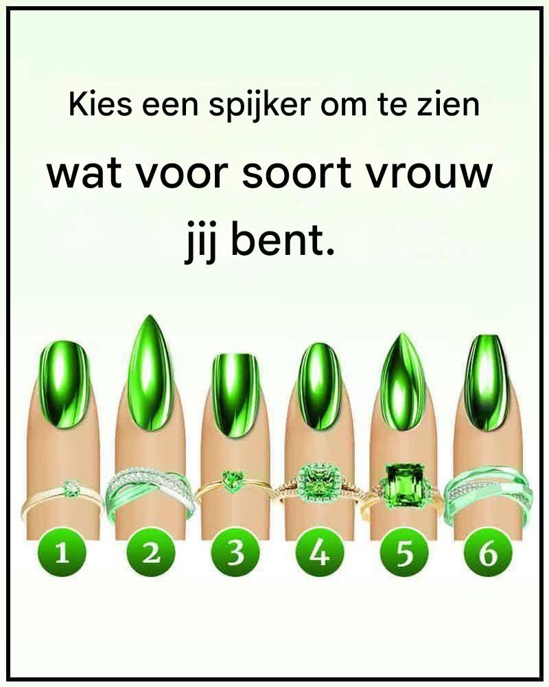 Kijk naar de afbeelding met de zes soorten nagelknippen. Elke vrucht heeft een andere vorm: van rond tot amandelvormig, vierkant of licht puntig. Kies degene die u het meest aanspreekt en ontdek welke persoonlijkheidskenmerken uw keuze weerspiegelt. Bedenk wel dat deze test enkel bedoeld is voor de lol en om uw smaak te testen.