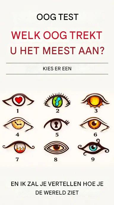 Soms is één blik genoeg om een deel van je persoonlijkheid te onthullen. Kies één oog en laat je intuïtie je leiden om je unieke manier van kijken naar de wereld beter te begrijpen.