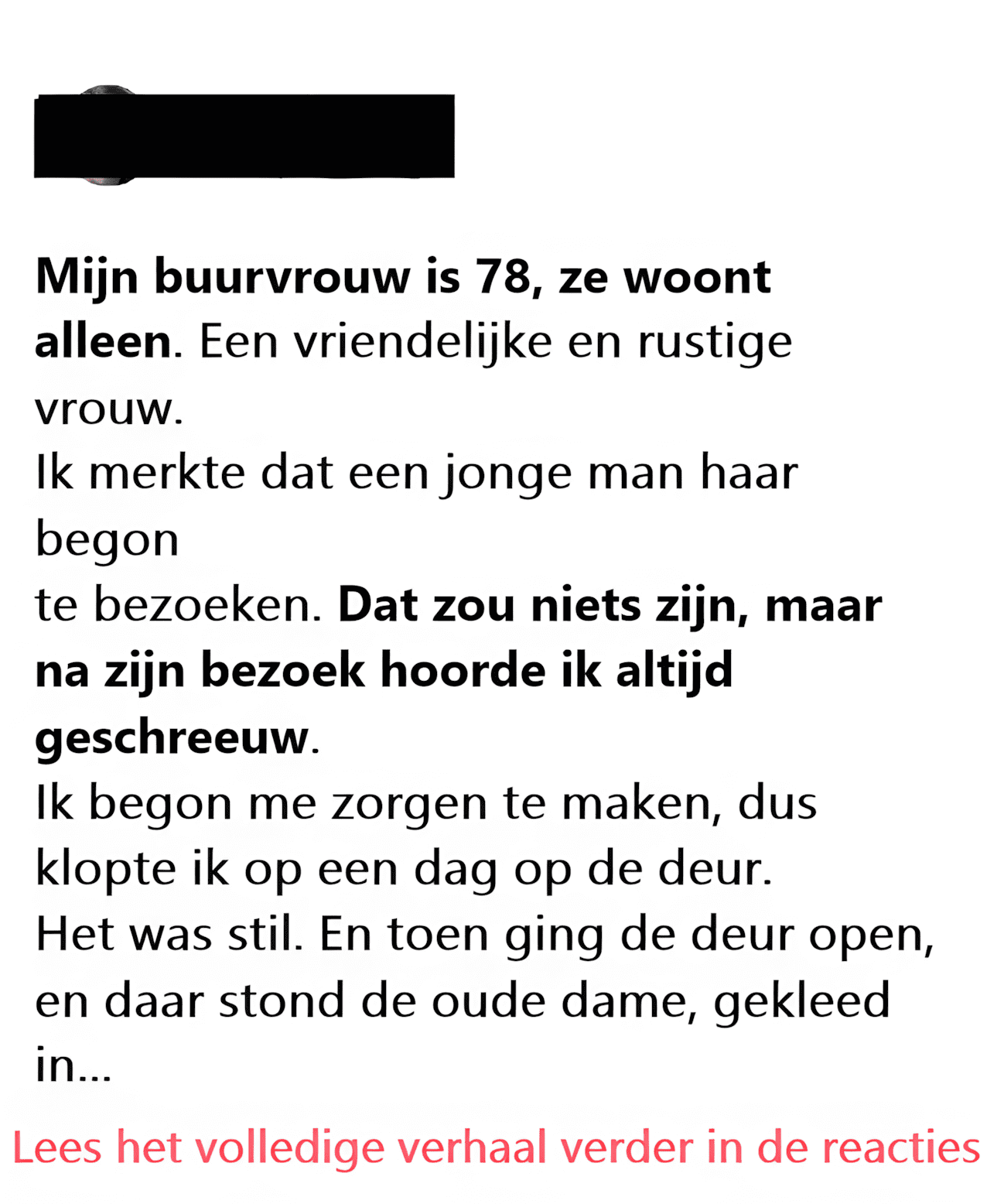 Maar enkele maanden geleden veranderde er iets. Er verscheen regelmatig een jonge man aan haar deur. Eerst dachten buren dat het misschien een kleinzoon of zorgverlener was, maar dat bleek niet het geval. Wat volgde, was iets dat niemand had verwacht — en dat veel mensen nog lang zal bijblijven.