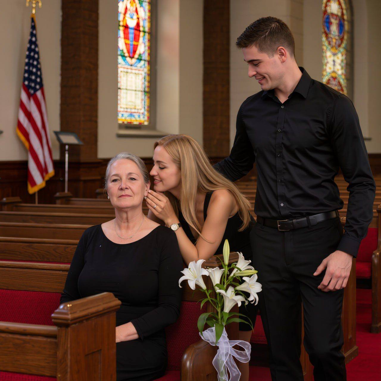 Haar twee vriendinnen, die vlak achter haar zaten, knikten enthousiast mee als achtergrondzangeressen. Een van hen fluisterde: « Ze had echt meer haar best moeten doen. » Het gefluister was niet zacht genoeg. Het geluid ging door. De organist haperde even en herstelde zich met een verkoelend akkoord.