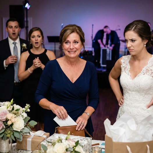 Ik voelde iets in me verstijven. Mijn wangen gloeiden, maar ik huilde niet. In plaats daarvan glimlachte ik – een kleine, ingetogen, beheerste glimlach. Ik liep rustig naar de cadeautafel, langs de stapel ingepakte dozen en glinsterende enveloppen. Onder een zilveren kaartendoos zag ik de envelop met mijn handschrift.