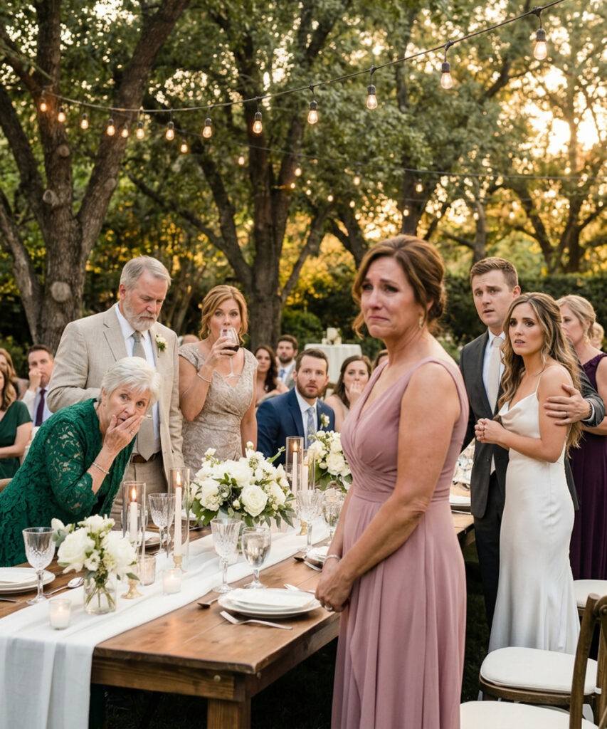 Het huwelijksdiner van mijn zus Vanessa vond plaats in een privézaal van een steakhouse net buiten Denver – zo’n plek met een gedempte amberkleurige gloed, gepolijst zilver en obers die zich bewogen alsof ze over ijs gleden. Elke tafel was gedekt met ivoorkleurig linnen, elk glas glansde en elk bloemstuk met witte rozen en eucalyptus was zo perfect geschikt dat het leek alsof iemand de werkelijkheid had bewerkt tot het er perfect uitzag. Ik kwam rechtstreeks van mijn werk, hoewel ik me in de personeelswc had gedoucht, een donkerblauwe jurk had aangetrokken en mijn make-up had gedaan. Toch voelde ik alsof ik de hele dag met me mee had genomen naar die zaal.