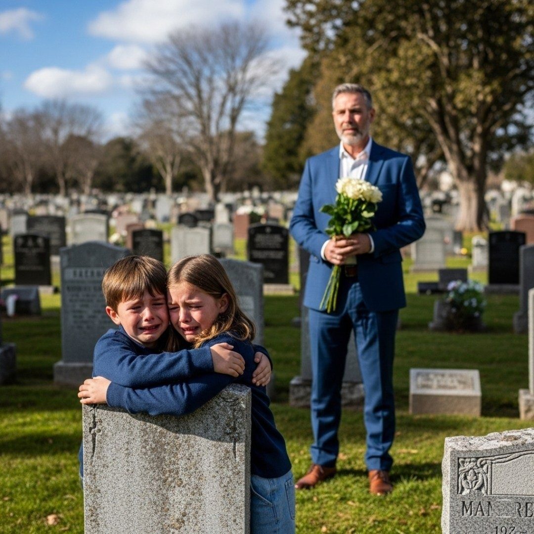 Ze omhelsden de grafsteen, hun schouders trilden en de tranen stroomden over hun wangen. Lily drukte met haar witte vingers op het koude graniet en Liam begroef zijn gezicht in haar schouder, onbedaarlijk snikkend.