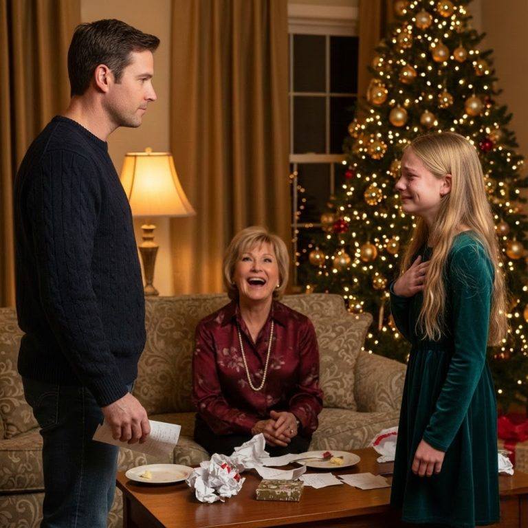 Op kerstavond kreeg mijn twaalfjarige dochter een sportschoolabonnement in een brief met de tekst: « Misschien ben je volgend jaar niet meer de dikke op de foto’s. » Haar nichtje kreeg een luxe reis naar Italië. Mijn tante, Patricia, lachte erom en deed het af als simpele motivatie. Ik keek naar Lily, mijn lieve dochtertje, en kuste haar op haar voorhoofd, in stilte belovend dat ze nooit meer zo’n pijn zou voelen. Diezelfde avond belde ik de bank, annuleerde mijn collegegeld, blokkeerde mijn creditcards en liet de stroom in huis afsluiten, iets wat ik me, zo bleek later, nog steeds herinner.