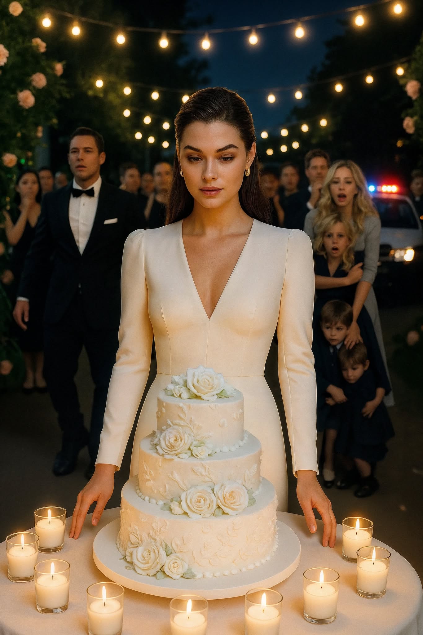 Een zacht gemurmel ging door de tuin. Zijn hand rustte op de taille van de vrouw alsof die daar altijd al had gelegen, terwijl de twee kinderen, met grote ogen, zich aan haar jurk vastklampten. De stilte die volgde was zwaarder dan onweerswolken. Alle ogen waren op mij gericht – wachtend op mijn reactie.