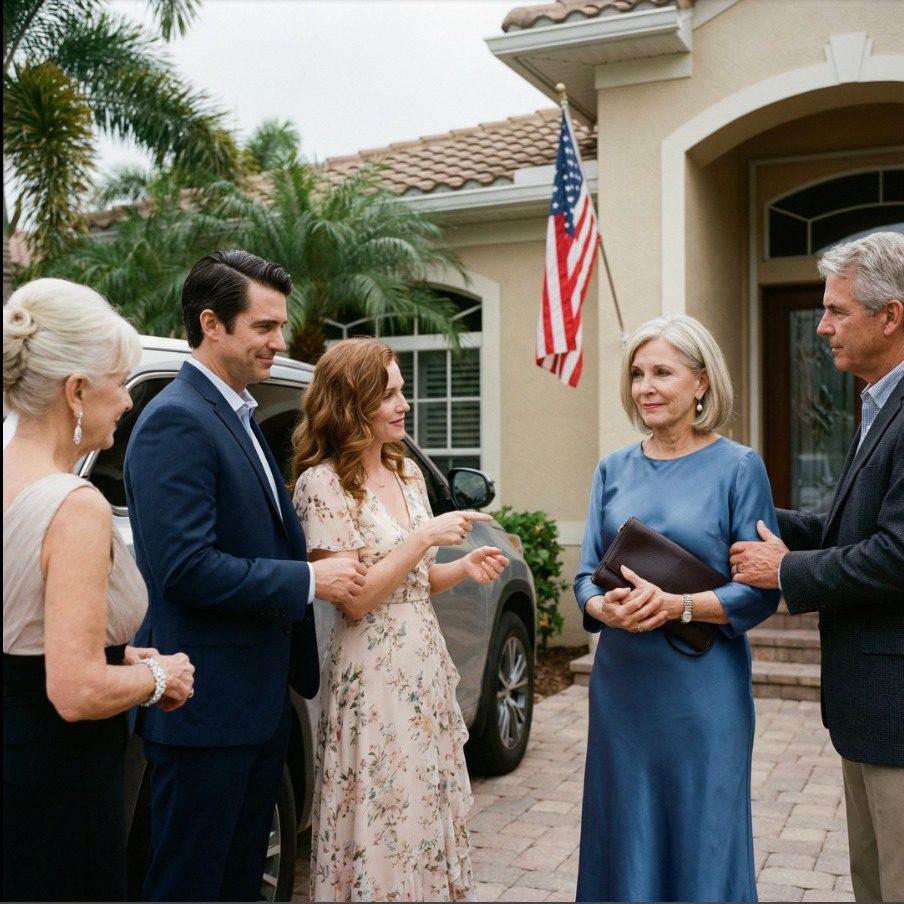 Haar schoonmoeder stapte met een verontrustend zelfvertrouwen uit de auto, en ze droeg niet zomaar sieraden: het was een waar symbool. Ze hief haar pols op, liet de diamanten schitteren in de Floridiaanse zon en zwaaide ermee in mijn richting alsof de armband zelf zei: « Kijk eens wat jouw zoon aan de moeder van mijn dochter heeft gegeven. »