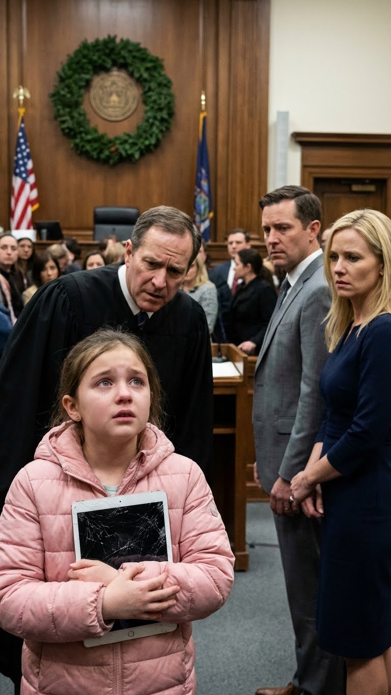 **Mijn man heeft een rechtszaak aangespannen voor de volledige voogdij, omdat hij mij « instabiel » noemde. Mijn dochter vroeg de rechter: « Mag ik u laten zien wat papa doet? » Toen het scherm oplichtte… beval de rechter de deuren op slot te doen.**