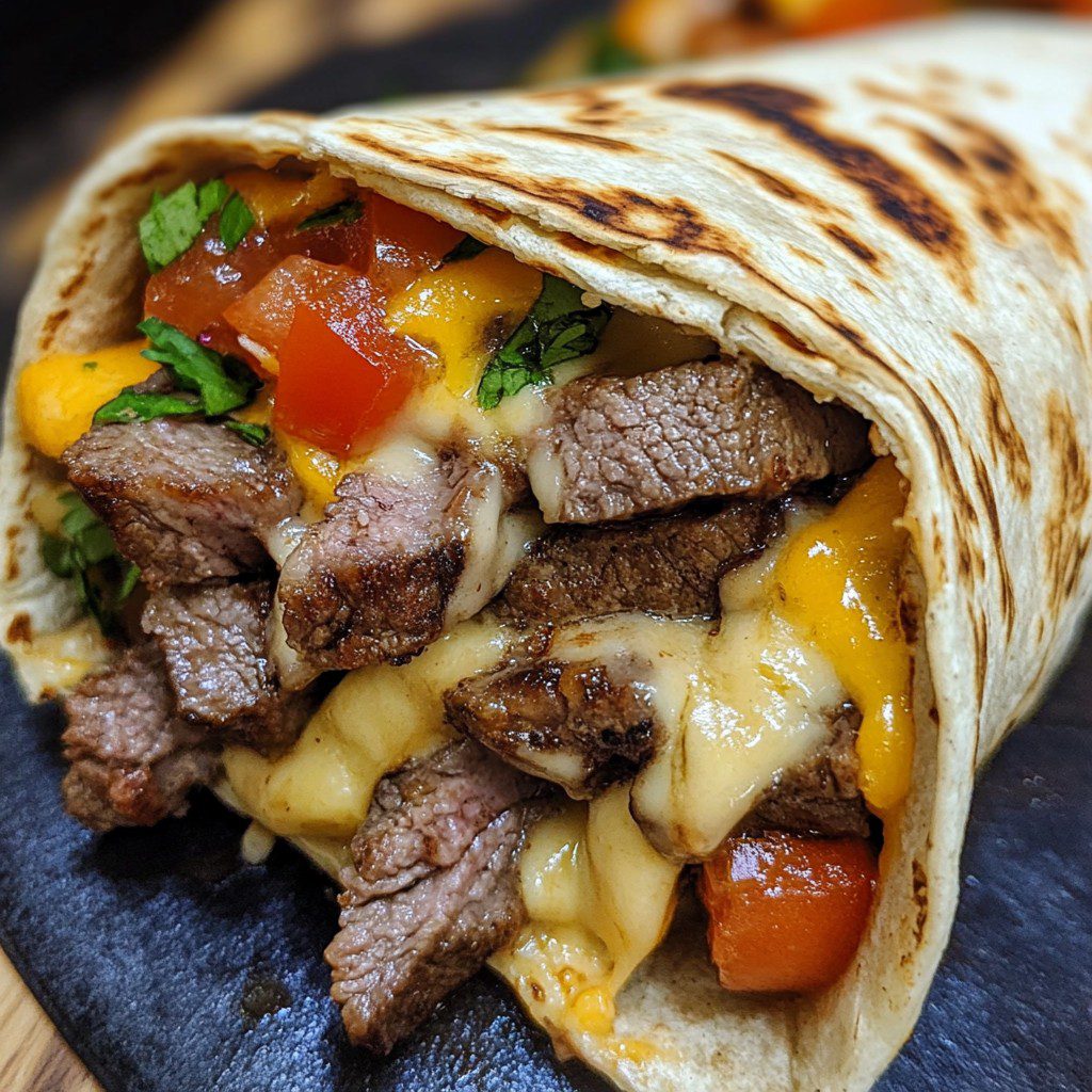 Wrap met biefstuk en gesmolten kaas