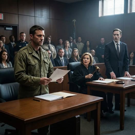 Mijn legerjas – schoon maar versleten bij de ellebogen – hing zwaarder dan zou moeten. Het licht in de rechtszaal weerkaatste op de gepolijste vloer, hard en meedogenloos, waardoor elke kreuk, elke imperfectie, elke aanname die mensen al over mij maakten, zichtbaar werd.