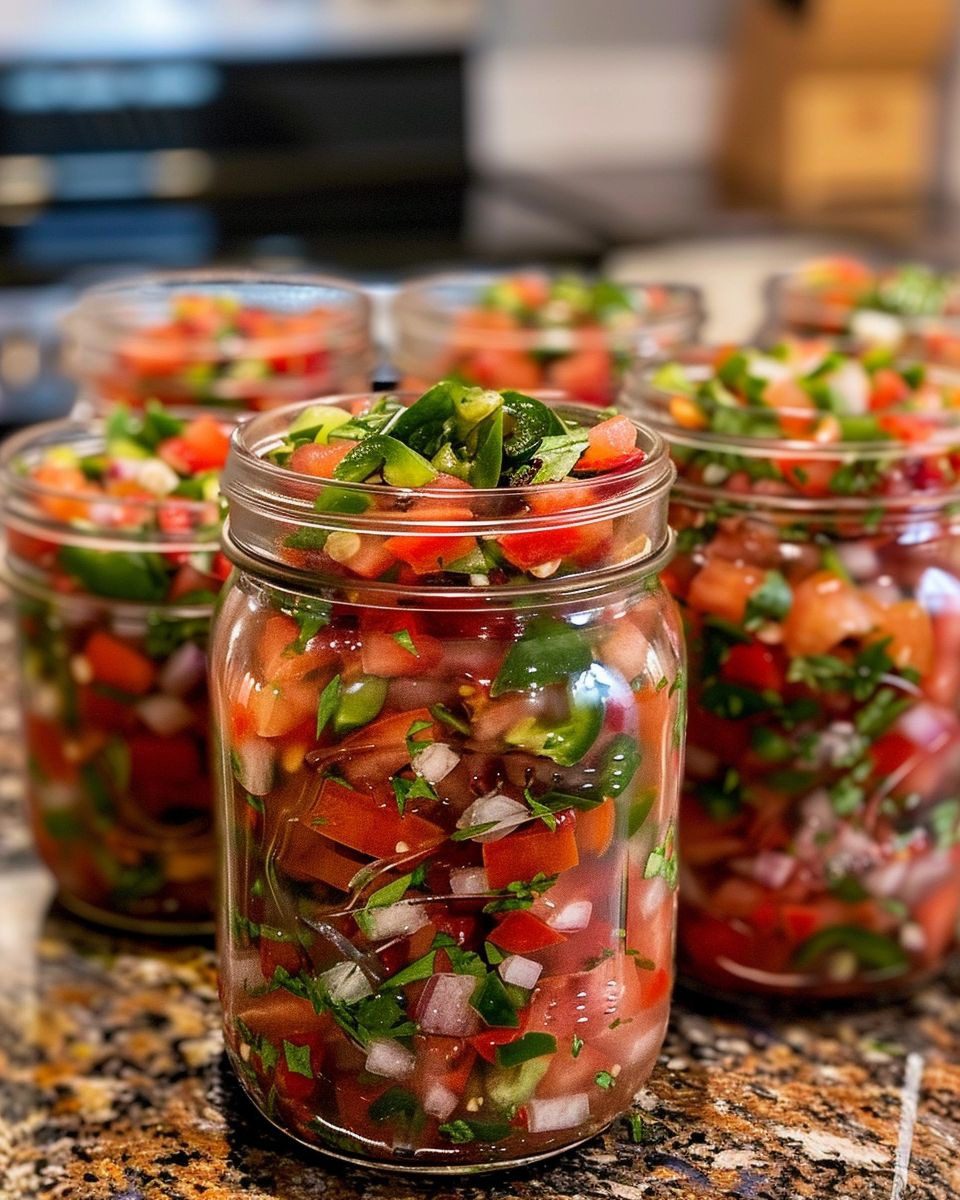 Door het in een gigantische glazen pot te doen, voegt u niet alleen een vleugje rustieke charme toe aan uw tafel, maar is het ook een gemakkelijke manier om pico de gallo vers te bewaren en te houden.