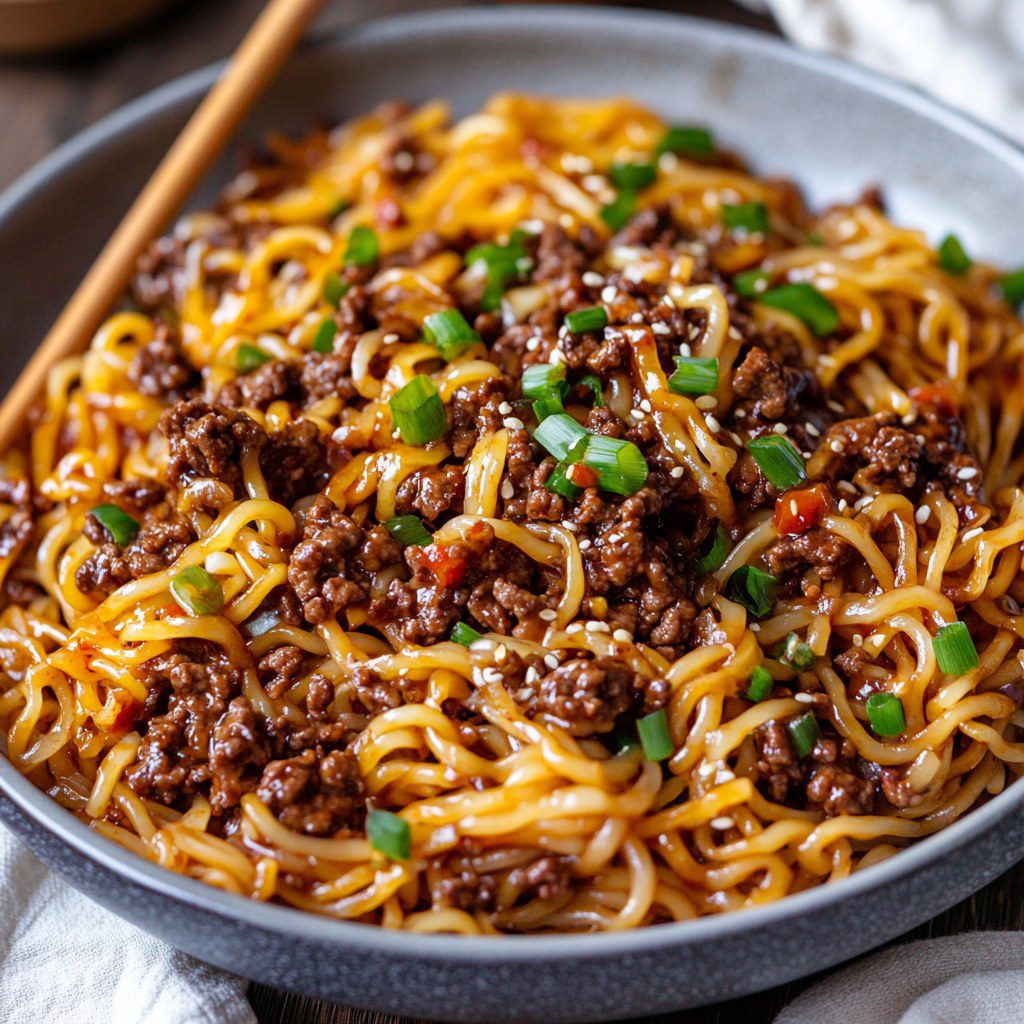 Pittige noedels met rundvlees en knoflook
