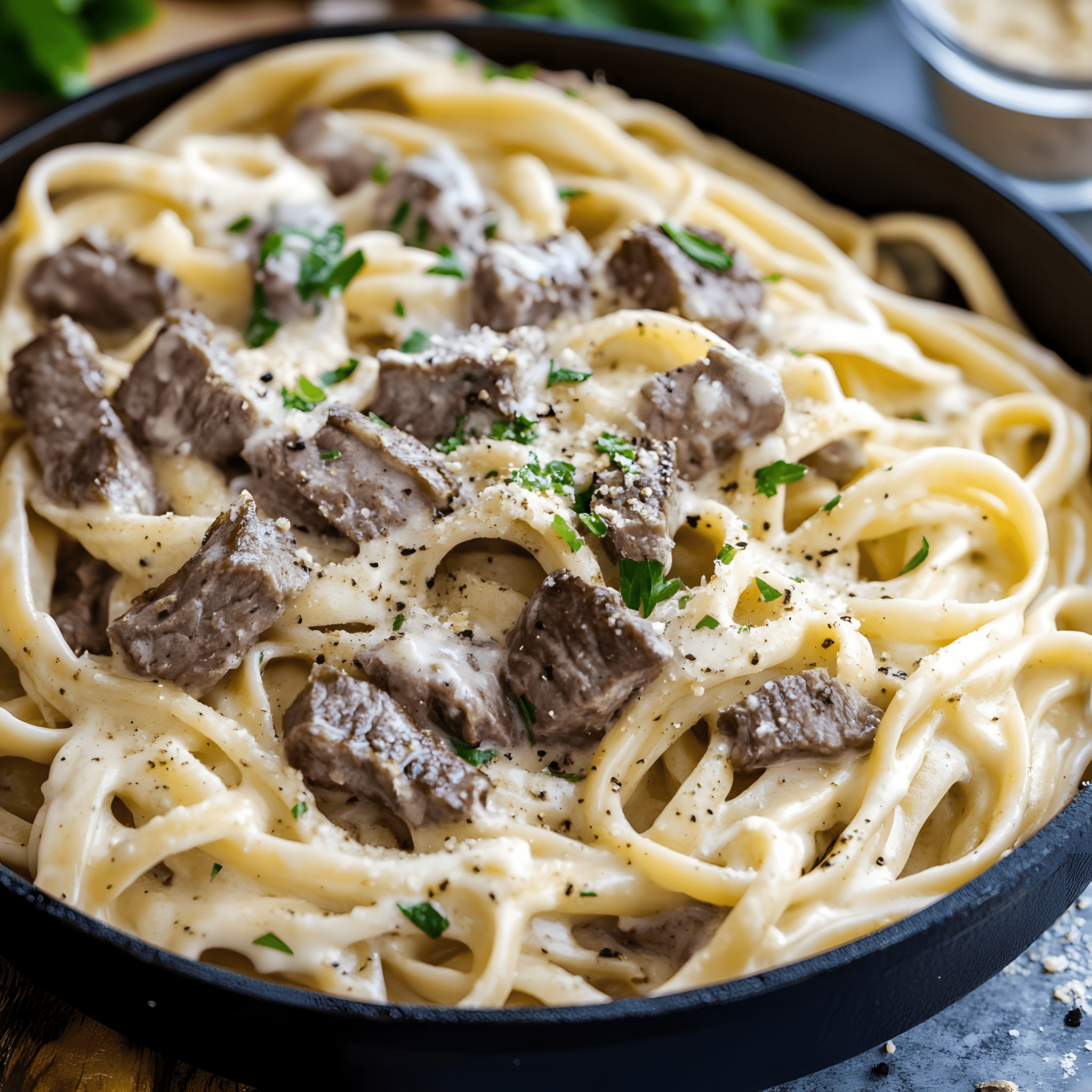 Romige Alfredo Pasta met Biefstuk 🍝🥩🧄