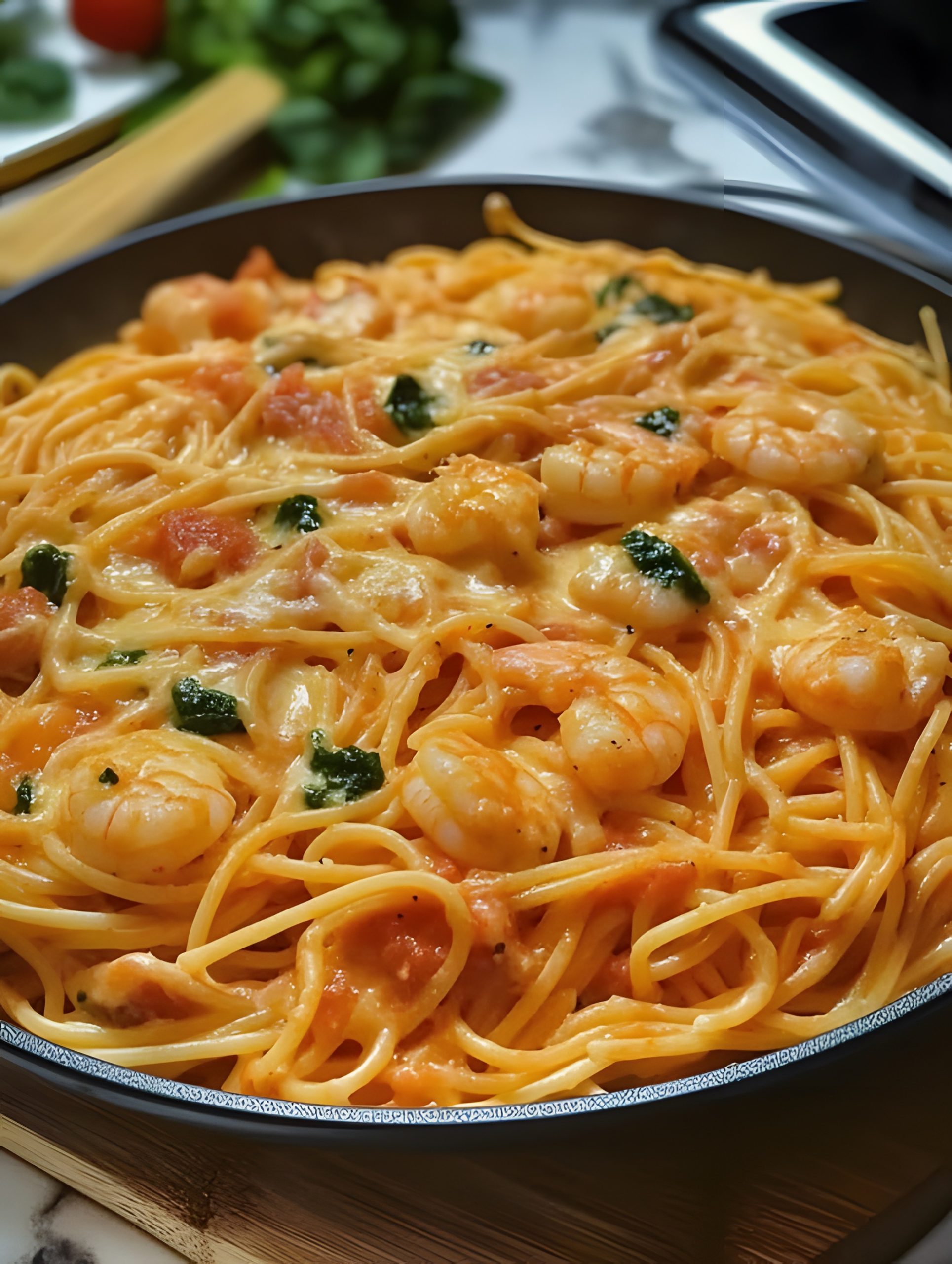Spaghetti met garnalen en romige tomatensaus is een perfecte combinatie van zachte pasta, sappige zeevruchten en een heerlijke, romige saus. Dit gerecht brengt de mediterrane keuken direct op je bord en is ideaal voor zowel een snelle doordeweekse maaltijd als een speciaal diner.