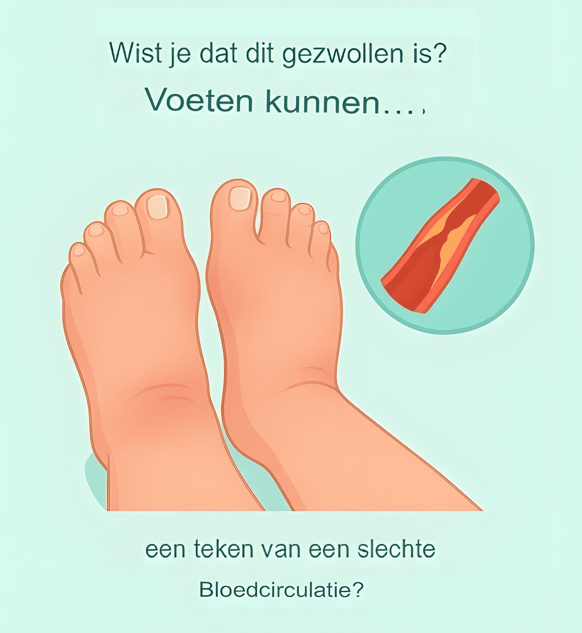 Een slechte bloedsomloop kan leiden tot vochtretentie, vooral in de benen, enkels of voeten.