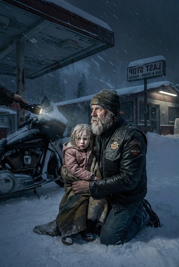 Van de snelweg 17 gedwongen, vlak bij de stille bergnederzetting Timber Pines, zocht Wolf wanhopig naar beschutting. Het eenzame tankstation dat ooit gestrande reizigers had geholpen, was donker en hermetisch afgesloten. De eigenaren waren al gevlucht naar de warmte van hun huizen en hadden de pompen en parkeerplaats overgelaten aan de woede van de storm. Wolf totaal zijn Harley onder de luifel van het station en zette de motor uit. De stilte werd meteen opgelokt door de gierende wind. Zijn leren bood nauwelijks bescherming tegen de bijtende kou, terwijl hij twijfelde of hij de dodelijke rit van zeven mijl naar het nabijgelegen motel moest wagen.