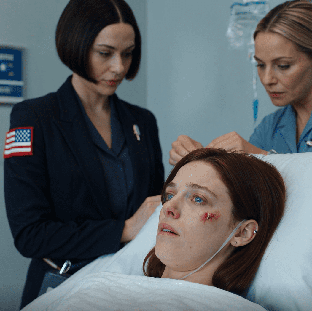 In mijn ooghoek bewoog een uniform. Toen stapte een vrouw naar voren – midden veertig, een vaste houding, een uitstraling die de kamer minder gevaarlijk deed aanvoelen. « Rechercheur Sarah Chen, » zei ze, en schoof een stoel naast mijn bed.