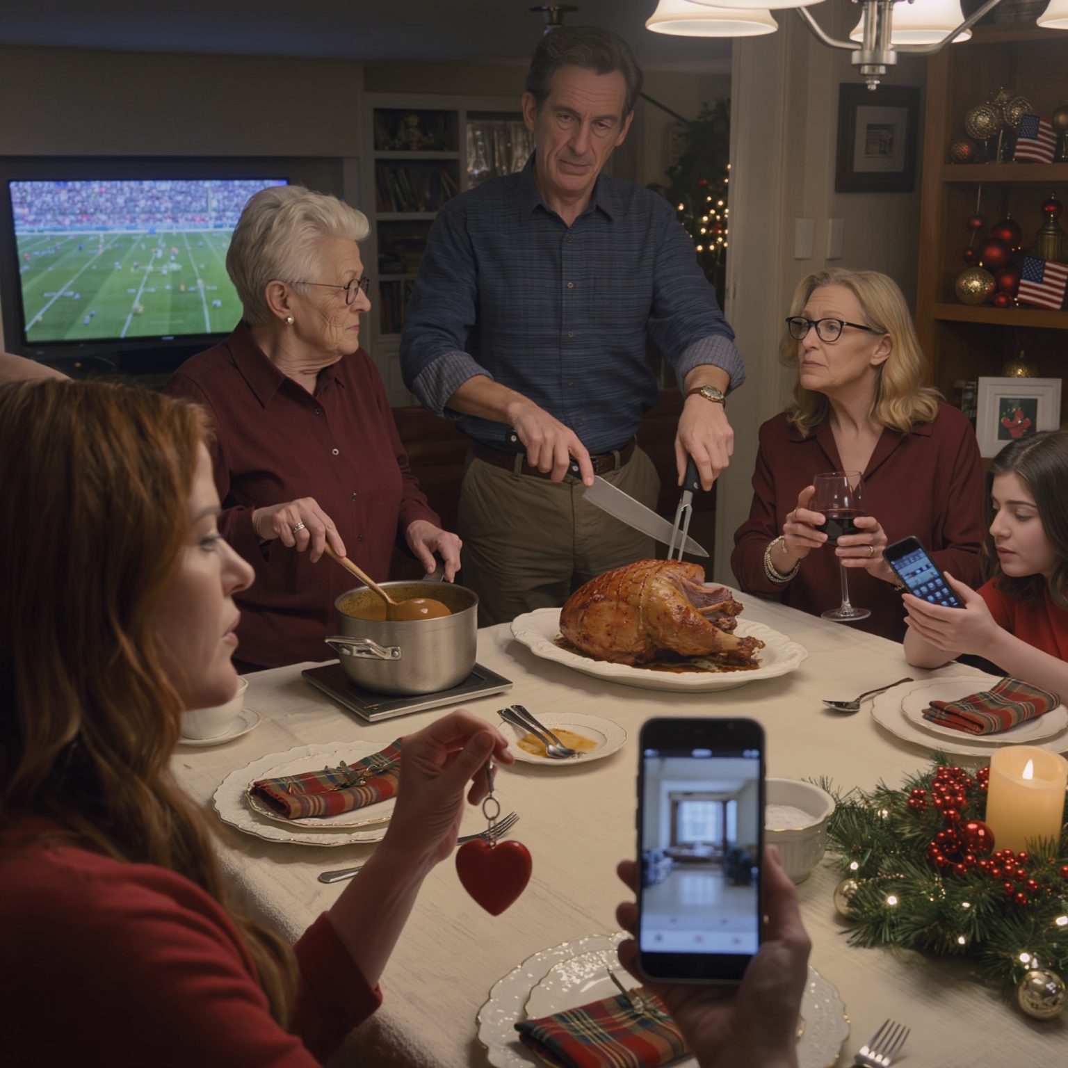 Tijdens het kerstdiner bedankte ik mijn tante voor de sleutelhanger die ze me twee maanden geleden voor mijn verjaardag had gestuurd. Mijn tante stopte met roeren in de jus, staarde zwijgend naar de tafel en zei kalm: « Ik heb je een appartement van 400.000 dollar gekocht. De sleutelhanger was een bonus. » De glimlach verdween van ieders gezicht. Een voor een werden mijn familieleden lijkbleek.