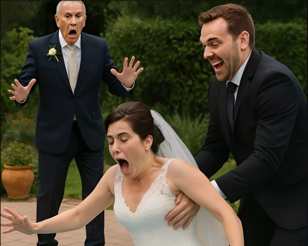 In eerste instantie glimlachte ik, denkend dat hij me romantisch wilde optillen. Maar binnen enkele seconden besefte ik dat hij me niet naar de toost of de dansvloer bracht, maar… naar de fontein.