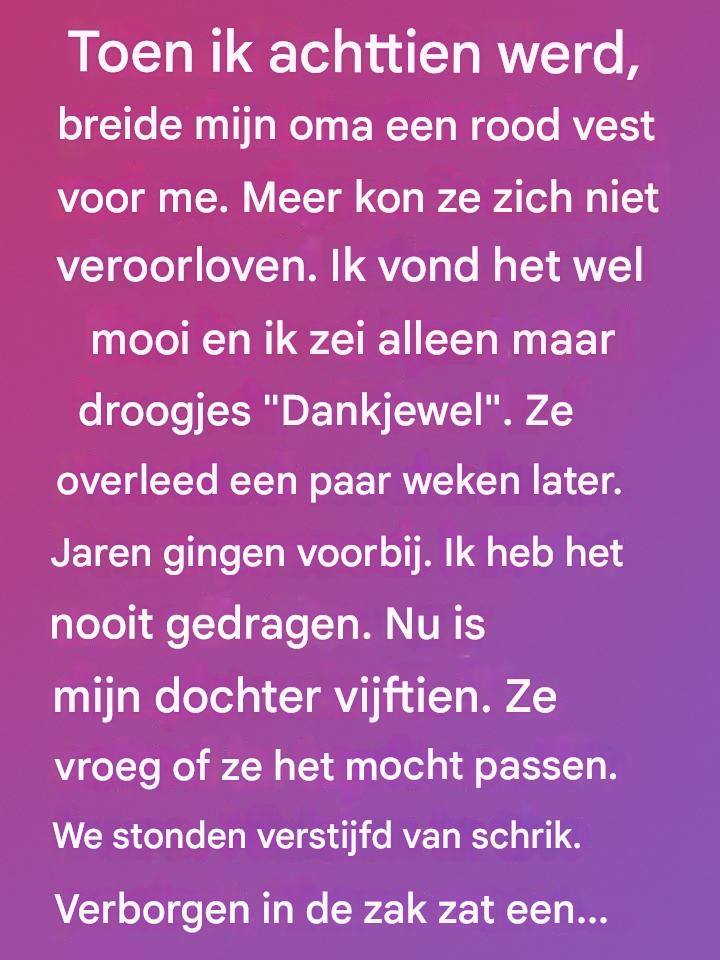 Toen ik achttien werd, gaf mijn oma me een rood vestje –