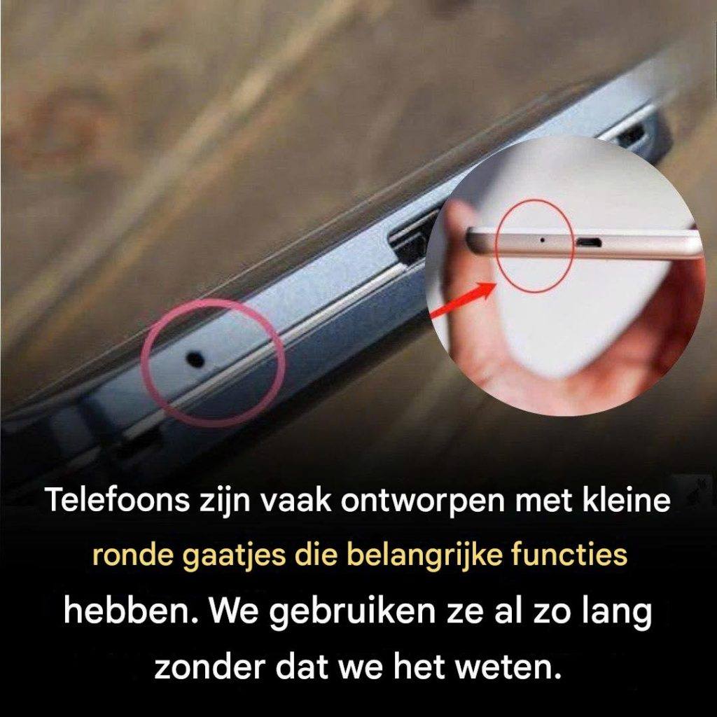 Het kleine ronde gaatje op je telefoon is eigenlijk een tweede microfoon , die een cruciale rol speelt in het dubbele microfoonsysteem dat is ontworpen om achtergrondgeluid te verminderen. Dit staat bekend als een ruisonderdrukkende microfoon en is een functie die in de meeste moderne smartphones te vinden is.