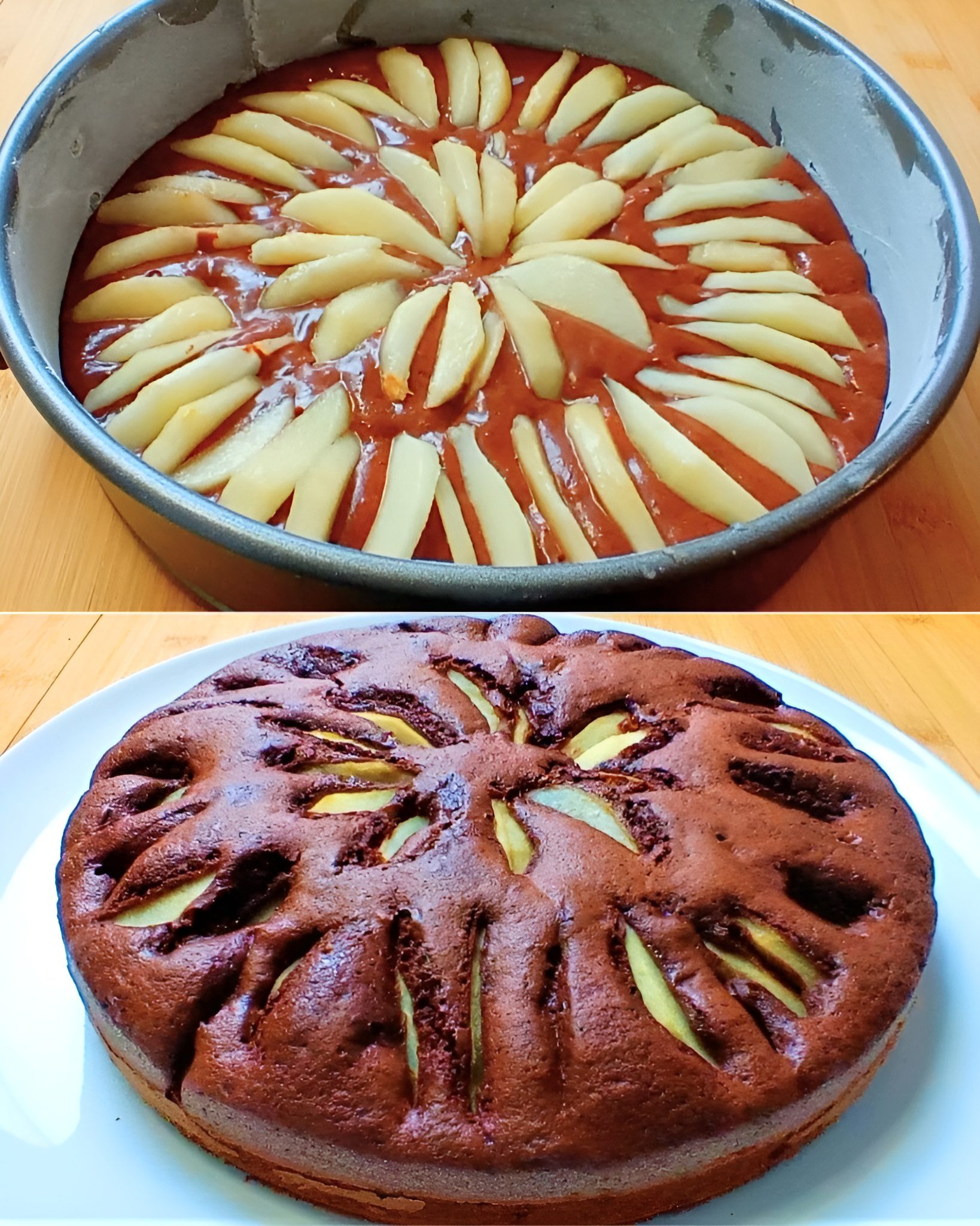 Deze klassieke Italiaanse cake combineert de zoetheid van rijpe peren met de intense smaak van chocolade. Perfect voor een gezellige middag met een kopje koffie of als elegant dessert na het diner.