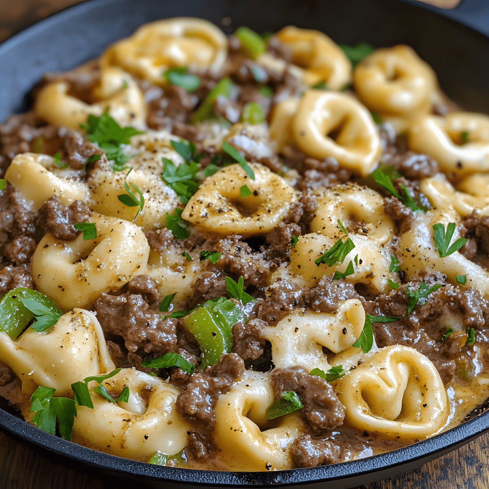 Tortellini met Cheesesteak en Romige Provolonesaus (uit de pan)