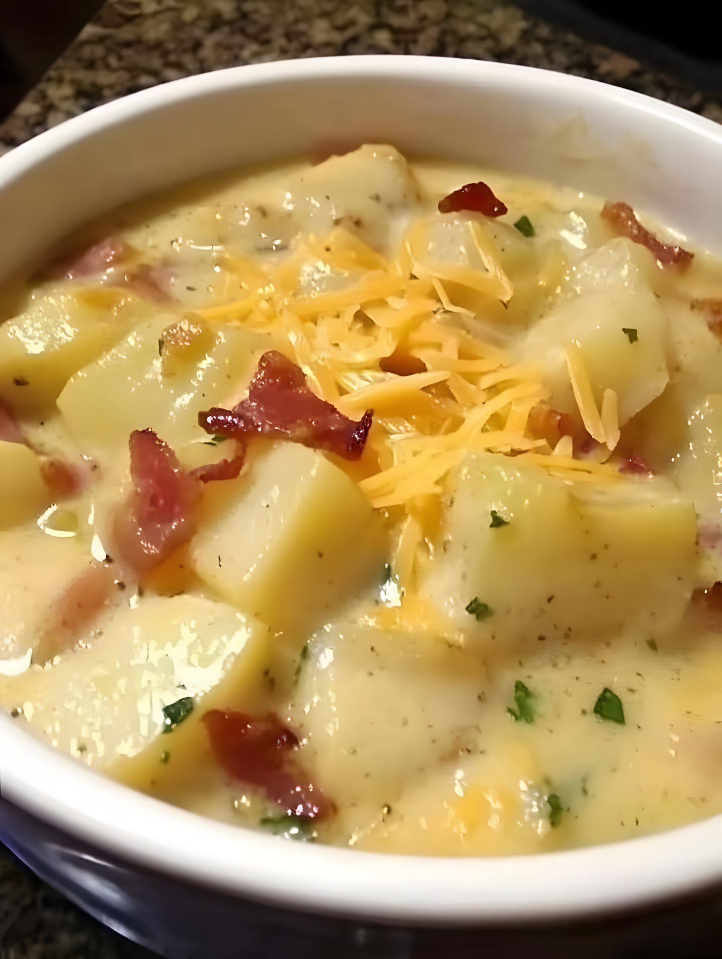 Er is niets troostrijkers dan een kom rijke, kaasachtige aardappelsoep, vol met knapperige bacon en warme, romige goedheid! 😍 Deze hartige soep in restaurantstijl is gemakkelijk te maken en perfect voor koude avonden! 🍂🥄 Een echte oppepper voor de ziel! ❤️