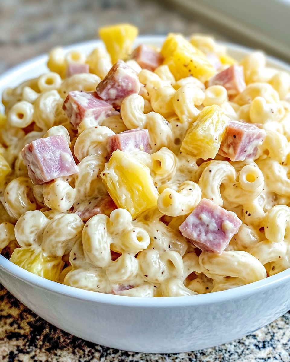 Creamy Hawaiian Macaroni Salad is een heerlijke variant op de klassieke macaronisalade en brengt een vleugje van de eilanden naar uw tafel. Dit gerecht is perfect voor familiebijeenkomsten of een informeel diner doordeweeks. De combinatie van de romige dressing en de zoete ananas maakt dit een onmisbaar gerecht voor jong en oud. Het is een heerlijk bijgerecht dat elke maaltijd een tropisch tintje geeft.