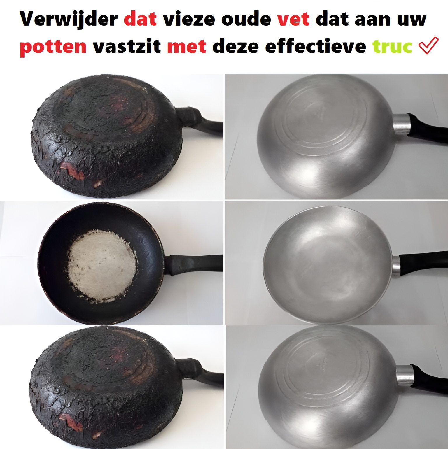 Heeft u potten en pannen met oude, vastgekoekte vetresten die onmogelijk lijken schoon te krijgen? Geen zorgen! Dit magische schoonmaakrecept helpt u om ze weer als nieuw te maken.