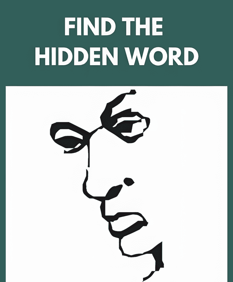 De afbeelding van kunstenaar Paul Agule verspreidde zich voor het eerst massaal op sociale media. Op het eerste gezicht ziet het er gewoon uit, maar het verbergt een woord in de gelaatstrekken. Bestudeer de neus, ogen, lippen en kin. Let op hoe de lijnen en contouren samenkomen. Een ander gezichtspunt kan helpen. Kantel je hoofd naar rechts of draai de afbeelding iets om het ontwerp duidelijker te maken.