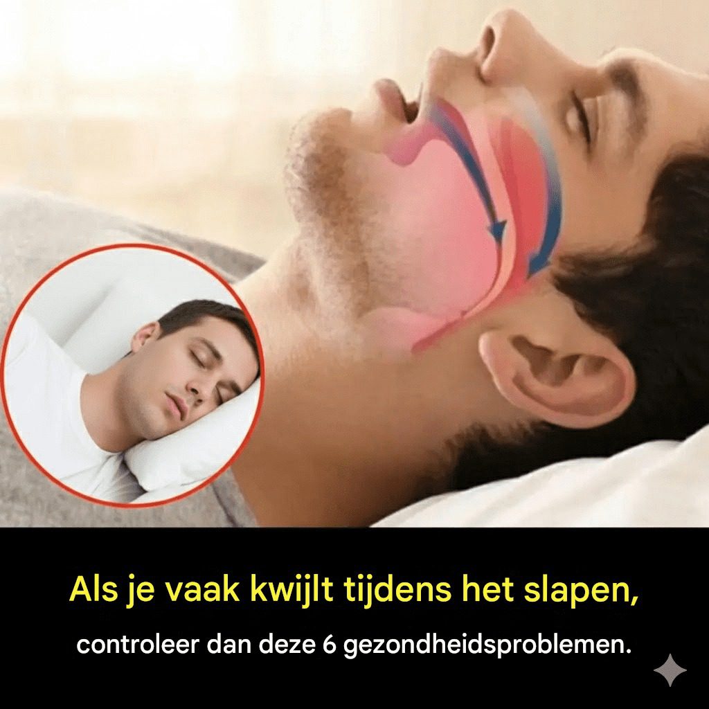 Slaapapneu is een van de meest voorkomende medische verklaringen voor nachtelijk kwijlen. Wanneer de luchtweg tijdens de slaap gedeeltelijk of volledig geblokkeerd raakt, heeft het lichaam moeite met ademhalen. Hierdoor slapen mensen vaak met hun mond open, waardoor speeksel gemakkelijker kan ontsnappen.